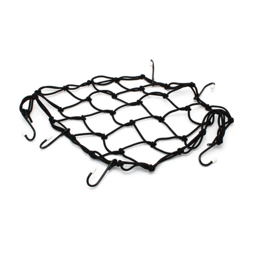 A simple bungee net with hooks to hold down helmets, bags, or other gear to your rack or seat. Very handy, and stores small! 13x13" unstretched20x...
