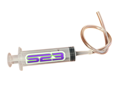 S23 syringe with hose for reverse bleeding brakes, or filling your gearbox! Features mL measurements on the side!